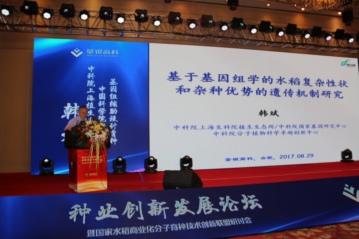 創新驅動,助力發展。2 9日下午,荃銀高科舉行種業創新發展論壇暨國家水稻商業化分子育種技術創新聯盟研討會,中國科學院院士、中科院上海植生生態所所長韓斌,北京市農林科學院玉米研究中心主任趙久然分別就“基因組輔助設計育種”和“玉米科研及產業發展方向”作了報告。荃銀高科副總經理張從合進行了“荃銀高科15周年科研成果及產業發展”情況匯報。