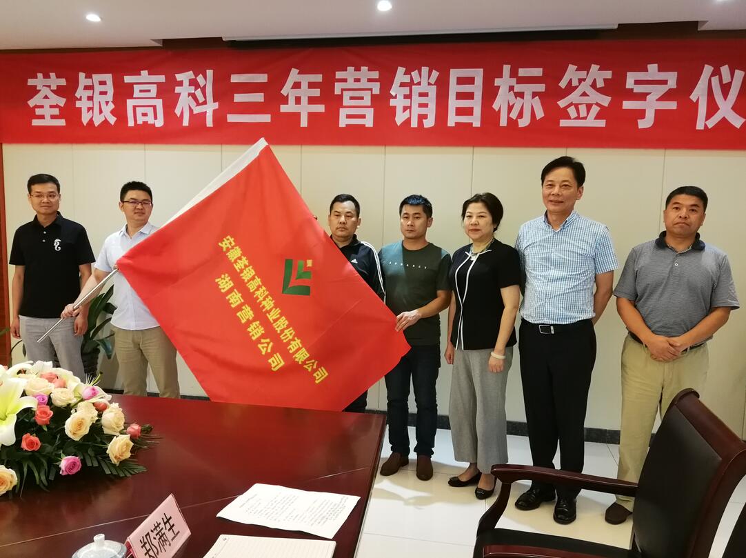 ????2018年7月11日上午,荃銀高科舉行三年營銷目標簽字暨授旗儀式,公司全體經營班子成員,總部各營銷公司、專業公司負責人及其團隊參加了此次簽字儀式。通過開展此次活動,有利于提高公司營銷能力,充分調動營銷人員積極性和主動性,實現責權利充分掛鉤,以適應當前新階段新形勢新任務,努力完成公司經營目標任務。